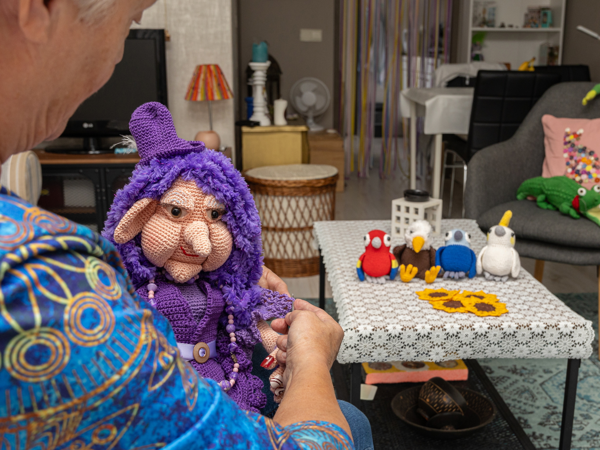 Voor Astrid bestaat haken uit veel meer dan alleen garen en een naald. “Het is veelzijdig en vooral niet suf”, lacht ze. “Je kunt van alles maken: popjes, mandala’s, een krokodil of heks. Ik hou van grapjes in mijn werk, een beetje humor is toch leuk?” Vaste haaktijden heeft ze niet. “Wanneer ik zin heb, pak ik mijn naald. Je kunt het overal doen en hebt echt eer van je werk. Er ontstaat langzaam iets onder je handen.”