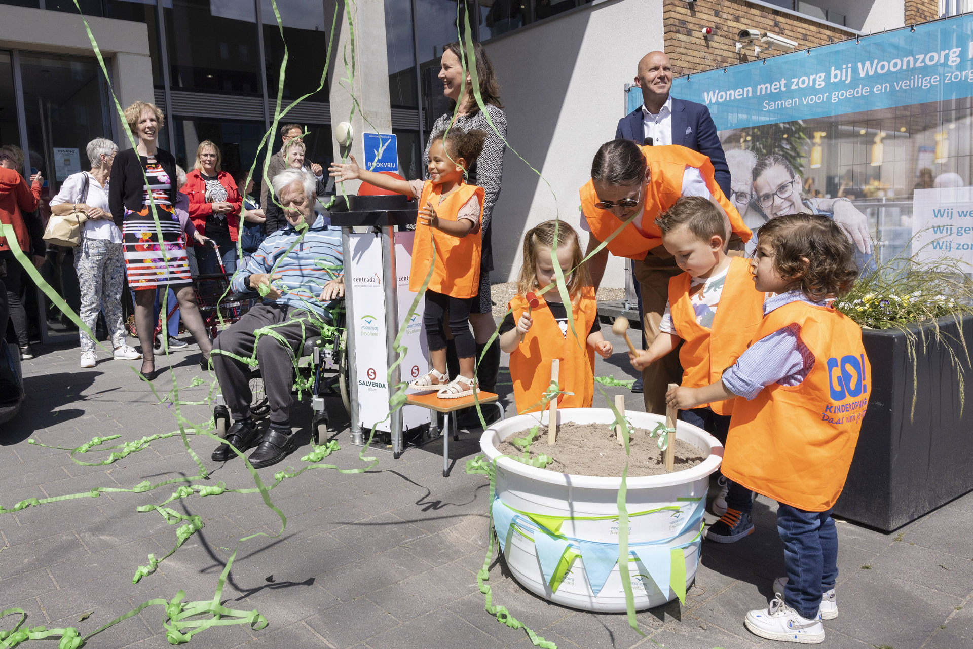 Met een gezamenlijke ferme druk op de confettiknop gaven burgemeester Mieke Baltus, Hanzeborg bewoner de heer Rooke en kinderen van kinderdagverblijf Hanzepret het feestelijke startsein voor de uitbreiding van woonzorgcentrum Hanzeborg. Aan de kant van Lelystad CS worden 40 nieuwe zorgappartementen voor mensen met dementie gerealiseerd. Salverda Bouw gaat de nieuwe aanbouw voor Centrada realiseren. Medio 2023 wordt de aanbouw opgeleverd waar vanaf augustus bewoners hun intrek kunnen nemen.